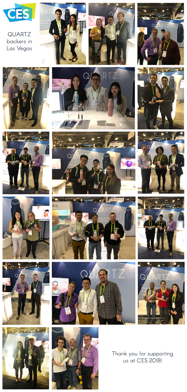 2018 has been a whirlwind so far! CES was AMAZING, and we have so much to share with you. We had the opportunity to meet talented individuals and companies doing innovative things in tech, chat with potential partners (we’ll have more to share on that soon!) and spread the word about the QUARTZ bottle.